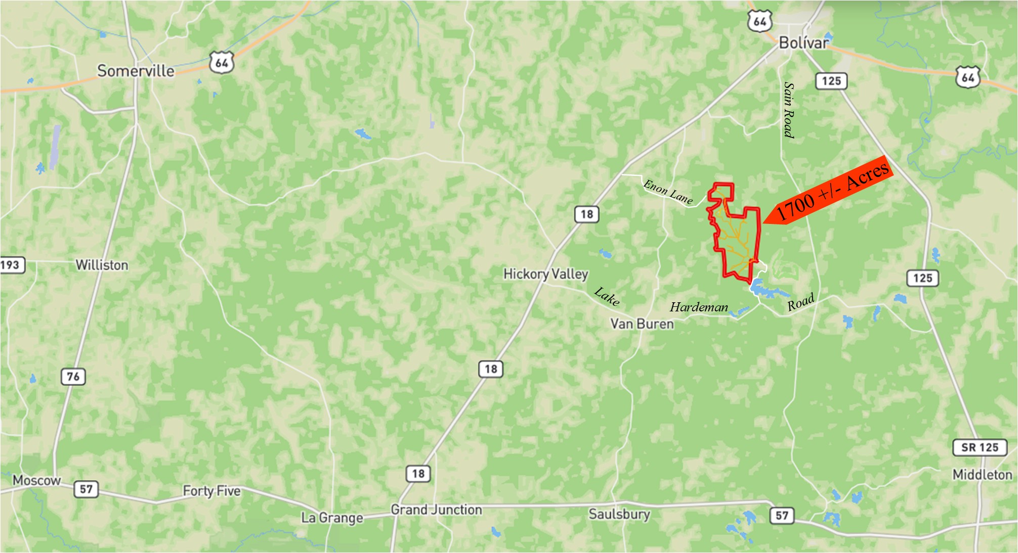 1,700 Acres, Hardeman County, TN – Location Map